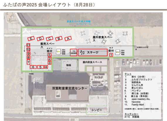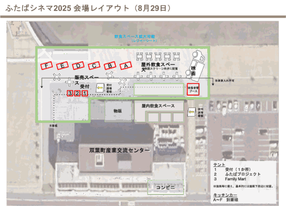 ※A〜Fのキッチンカーについては、到着順のレイアウトとなるため、実際の配置と異なる可能性があります。